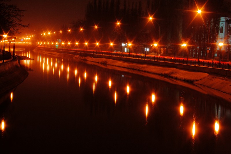 Nume fotografie: O lumina calda mangaie luciul apei inghetate... Noaptea dispare o clipa, ori mie asa mi se pare. Nu mai e o noapte rece, e o nopate calda care parca zambeste, rade de una singura stiind ca nu-i va surpinde nimeni intimitatile.