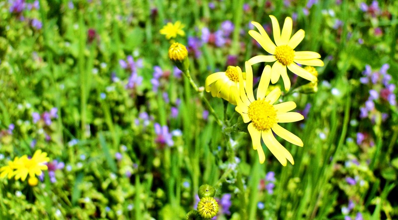 floare-galbene-fundal-verde-mov