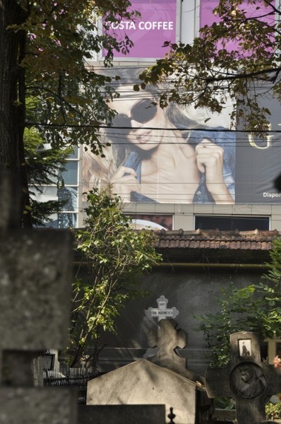 Buna contrapunerea celor doua planuri. Ar merita recadrata, eliminand reclama scrisa din partea superioara si trecuta in B/W, umbrind selectiv pentru a pune mai mult in evidenta cele 2 zone, lumi diferite.