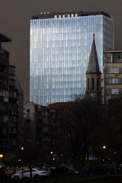 Imi place mult imaginea asta, foarte intriganta pentru ce inseamna Bucurestiul modern, in perpetua schimbare.