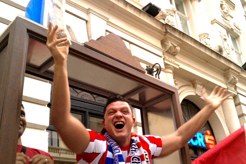 nu prea se observa dar baiatul asta tinea paharul ala de bere gol in mana si striga "la copa, la copa!"