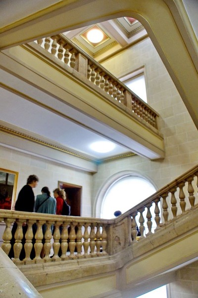 very nice: the height reaching to the ceiling; i like the banisters--beautiful and the arc that filled the frame of the photo