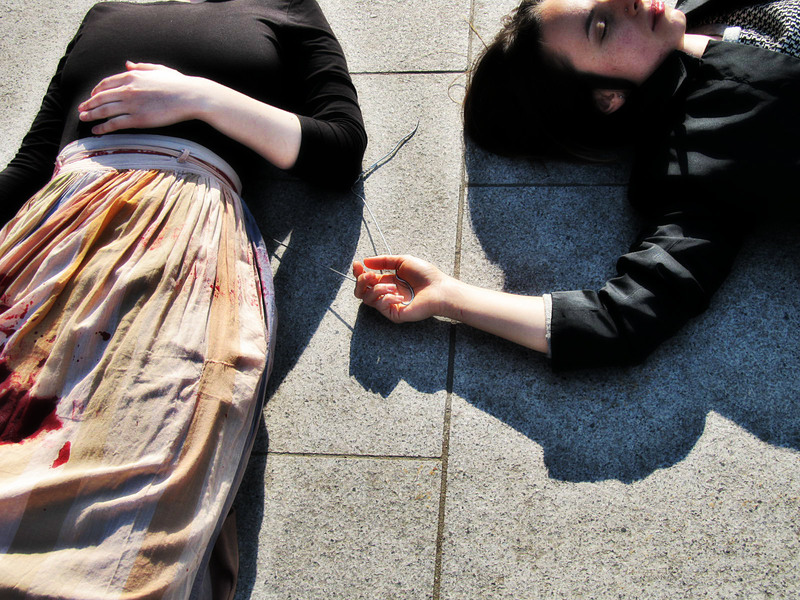 Flash mob in University Square, Bucharest: "Banning abortion kills! 1966-1989: Over 10,000 Women".