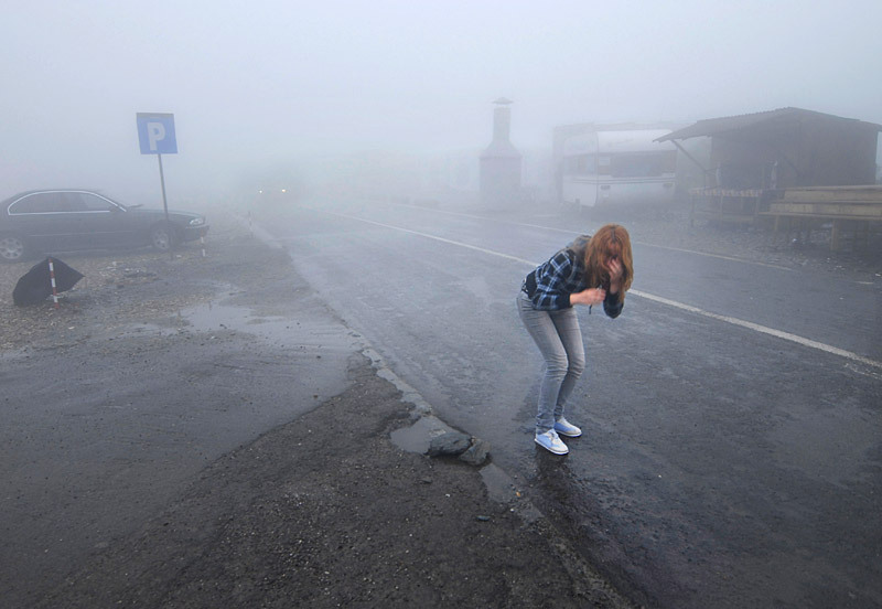 nu inteleg ce facea...poze ? ii zburase umbrela ? nu mai bine sedea ea undeva la adapost ? de ploaie si alte alea...:)