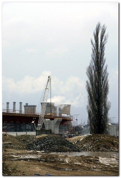 I like those piles of gravel/soil and the tall tree and the factory to fill the rest of the frame against the vast sky